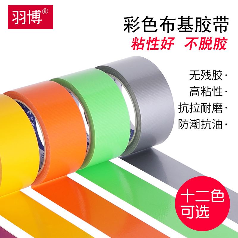 Color cloth base adhesive tape diy decoration photo wedding exhibition red yellow blue green black and white brown silver purple vigorously high sticky leakage waterproof single-sided powerful floor protective film rubberized fabric carpet warning adhesive tape