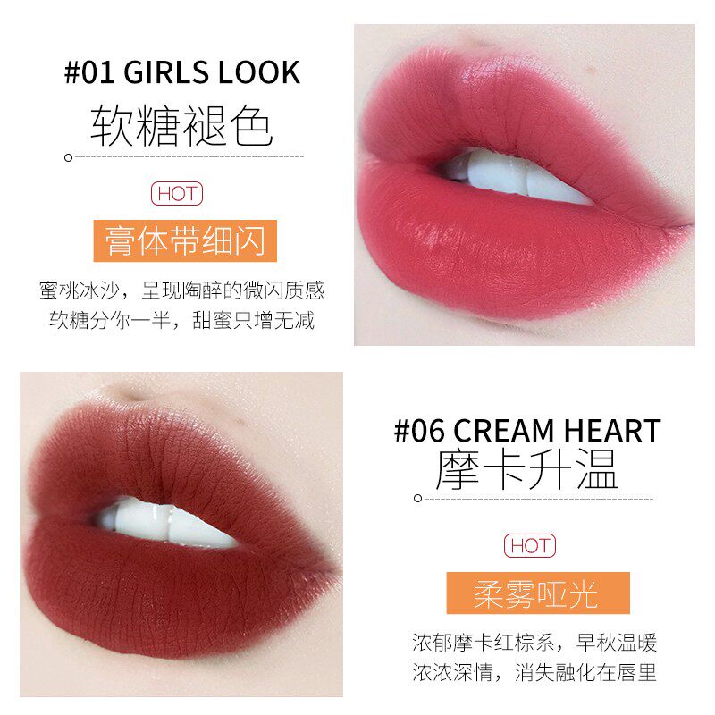 01 Fudge Fade 02 Cream Heart 03 Red Wine Love 04 Berry Heartbreak 05 Orange Naughty 06 Mocha Warm Up
