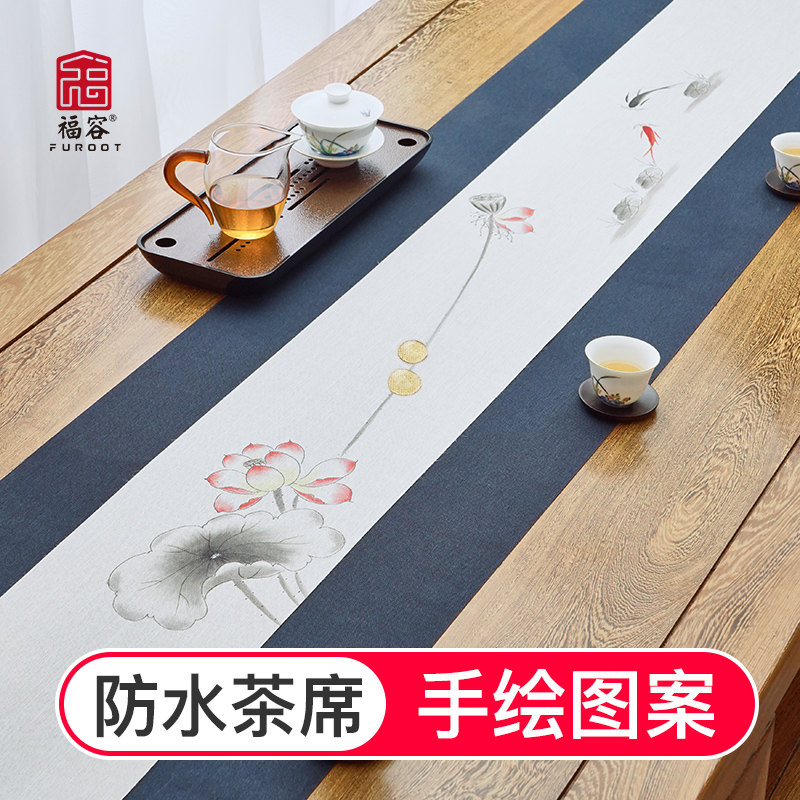 Waterproof tea table flagZen Chinese tea ceremony tea table cushion hand-drawn tea table cushion