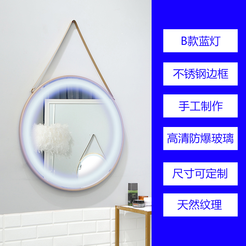 Single-sided mirror without lamp (hanging rope can be selected) single-sided mirror LED white light (color can be customized with A section (LED white light) A subsection (LED blue light) A section of (LED red light) B Stainless steel
