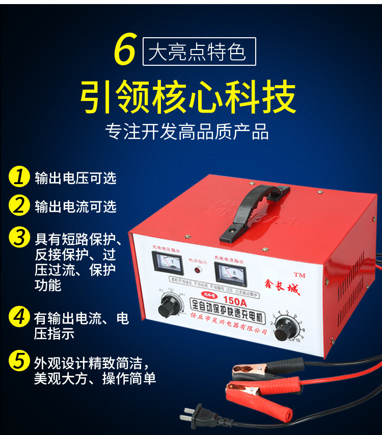 Pure copper car battery charger 12V24V high power intelligent universal fast car battery charger