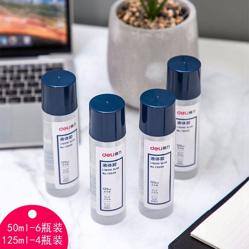 Deli office glue Liquid glue 50ml 125ml glue liquid manual glue Data document adhesive Financial accounting certificate bill adhesive DIY student art glue Smear smooth