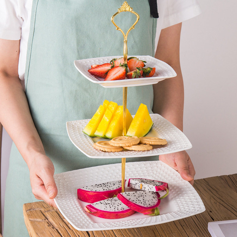 Creative Ceramic Fruit Pan Home Triple Cake Pan Creative Snack Shelf Living Room Multilayer Candy Snack Dish tray