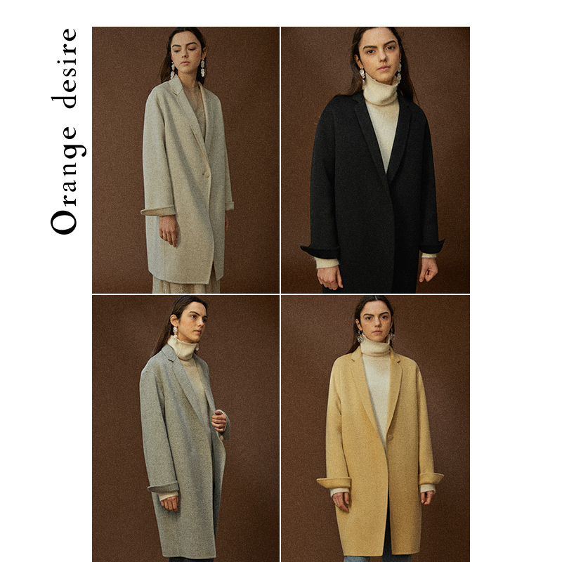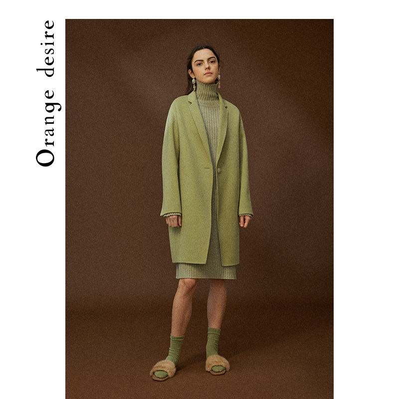 Orange Desire Avocado green wool coat women's 2020 winter new medium and long version wool coat