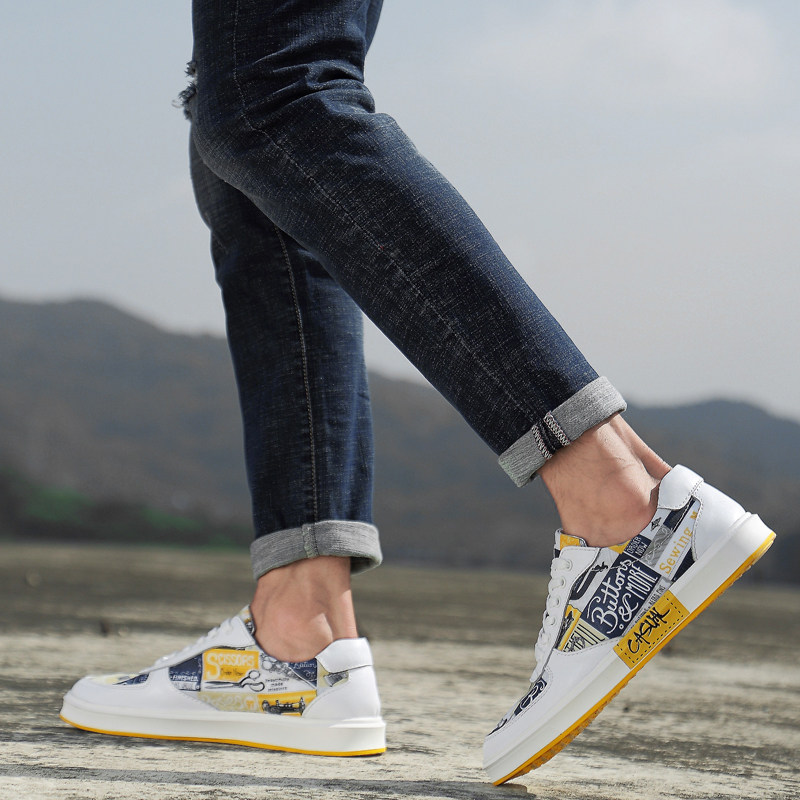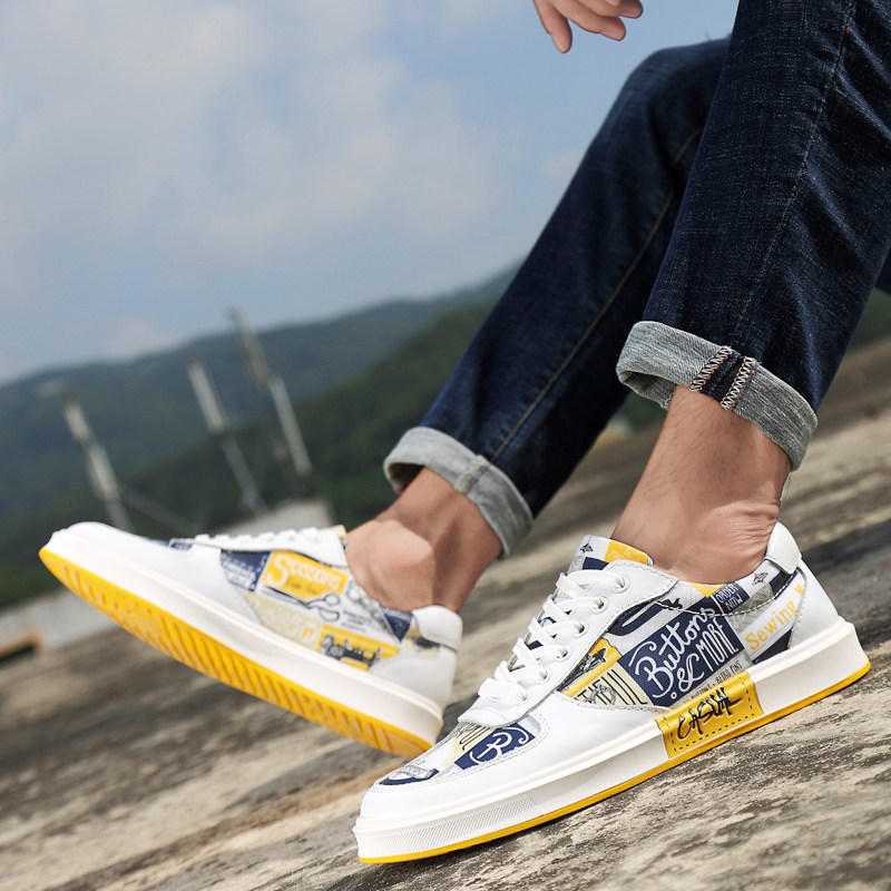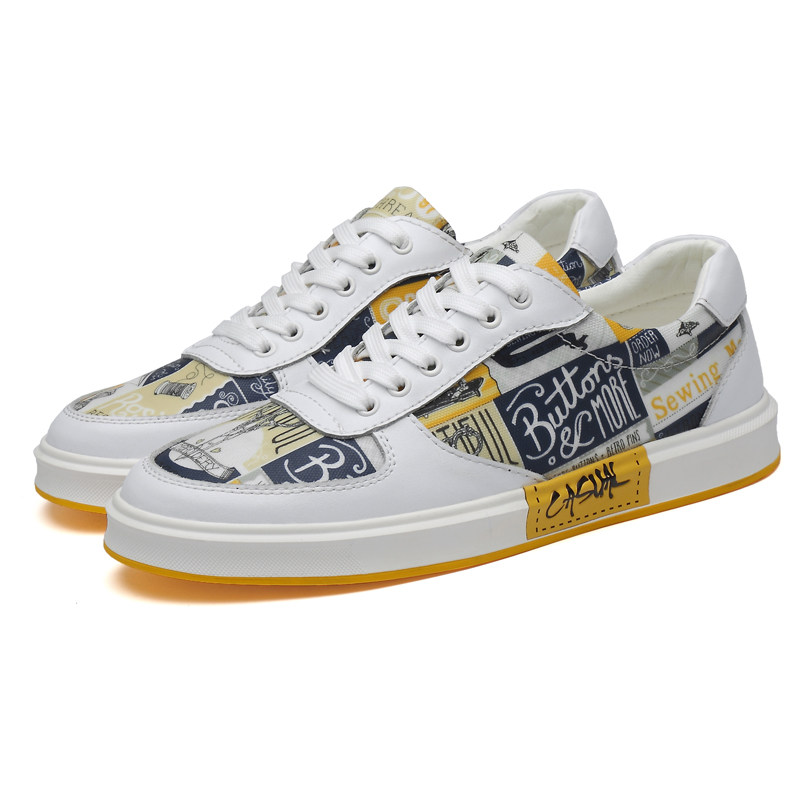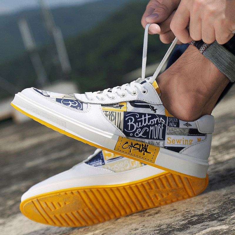 Tide brand white shoes men's leather graffiti trend all-match fashion low-top personality casual small 36 large size 46 canvas shoes