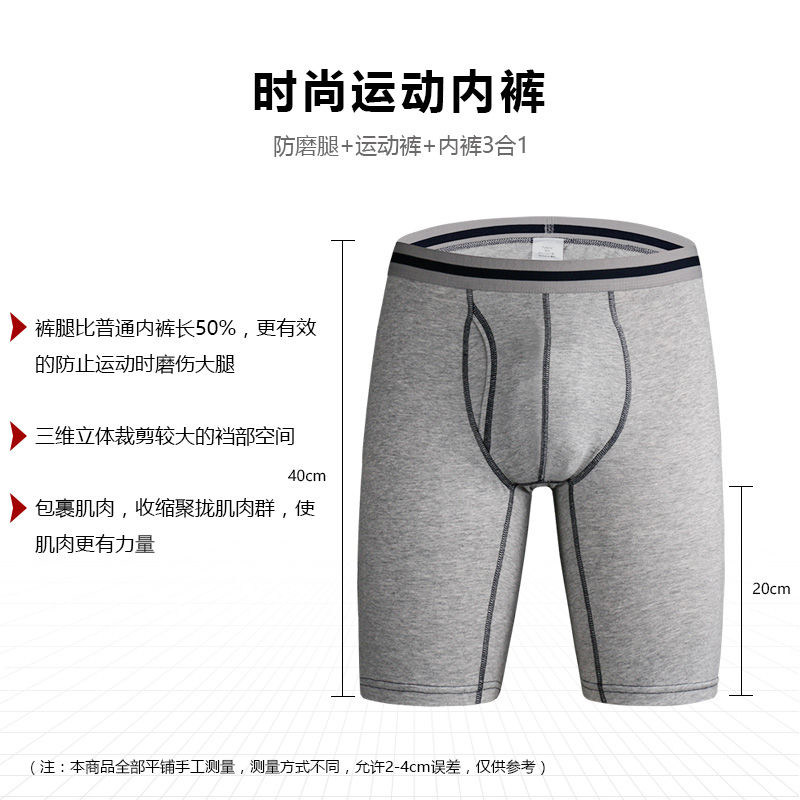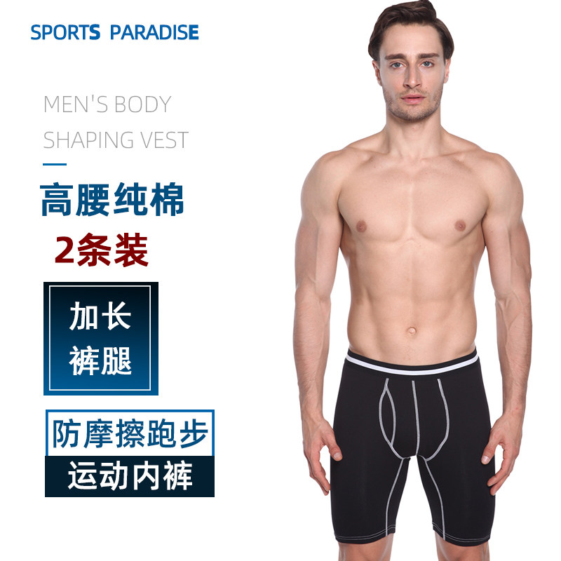 2 strips of pure cotton men's underwear men's flat corner pants breathable Young men's four-corner pants lengthened motion Running anti-wear gear