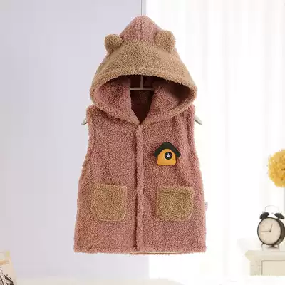 Children's warm vest hooded with velvet thickened male and female children cotton baby horse clip baby shoulder 0-1 year old 2 autumn and winter