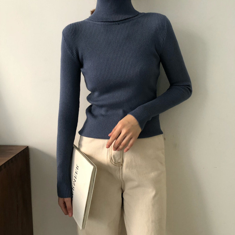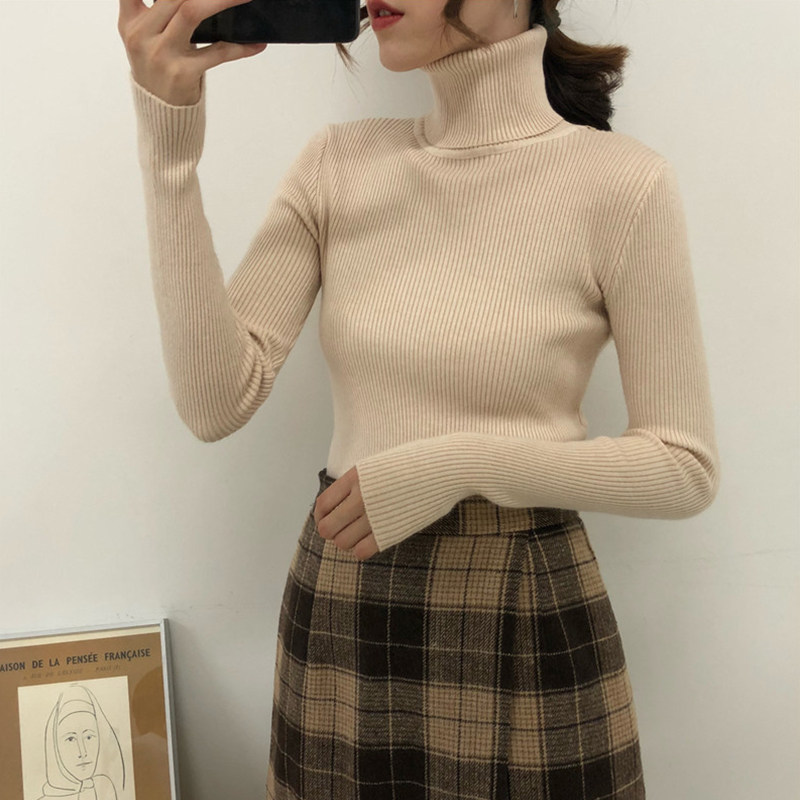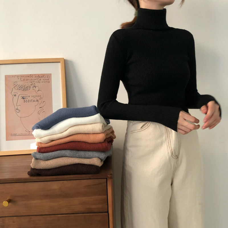 2020 autumn and winter new Korean version black tight-fit undershirt female long sleeve high collar thickened knitted sweater