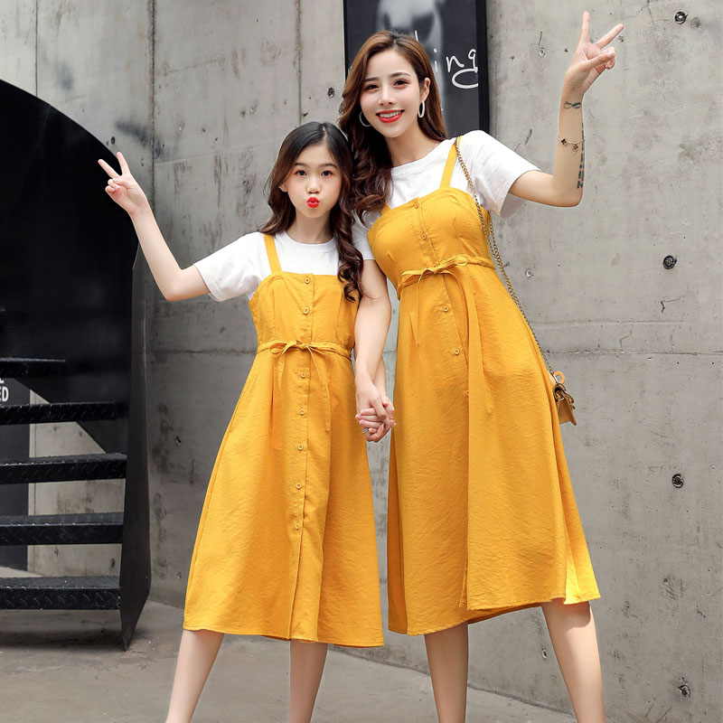 Parent-child summer dress mother-daughter dress 2021 new fashion Korean version of the net red Ocean school suit high-end two-piece set