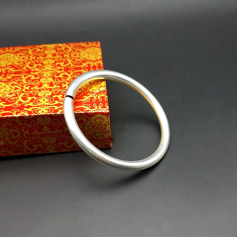 Full 99 national style ancient method Miao silver bracelet for men and women plain rough round solid simple bracelet niche design network