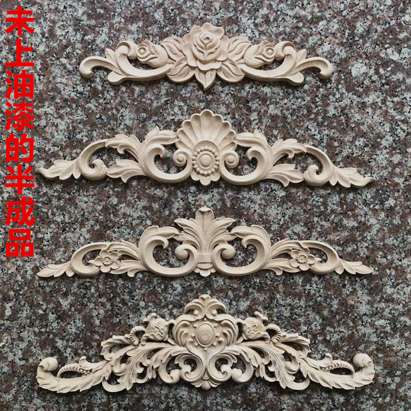 Dongyang European-style solid wood carved applique door head decoration embossed corner flower carved lattice piece furniture background wall decoration