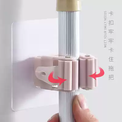 Mop clip artifact adhesive hook broom card holder buckle strong non-perforated nail mop clip powder room wall hanger sticky hook