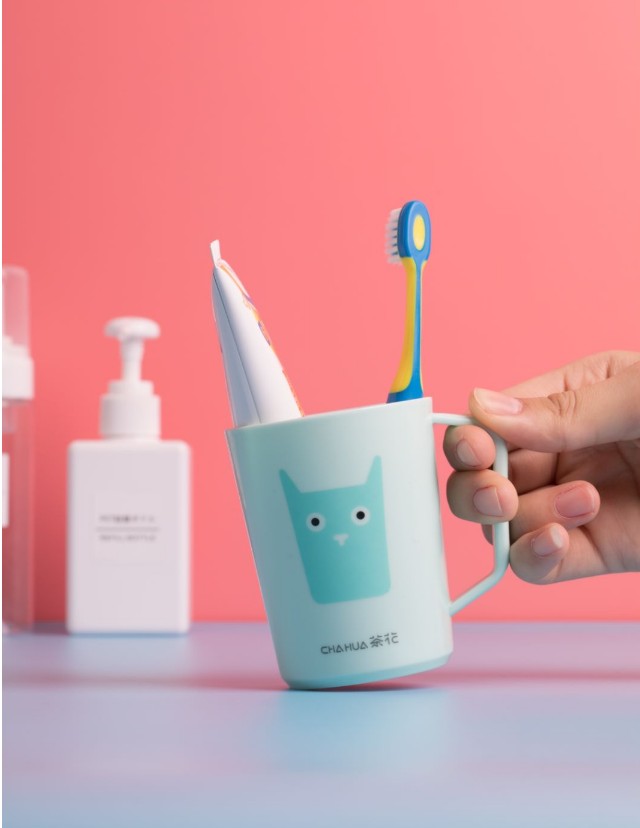 Camellia 240ML Miya Children's Mouth Cup Kindergarten Baby Cartoon Solid Color Wash Drinking Water Handle Cup 054006