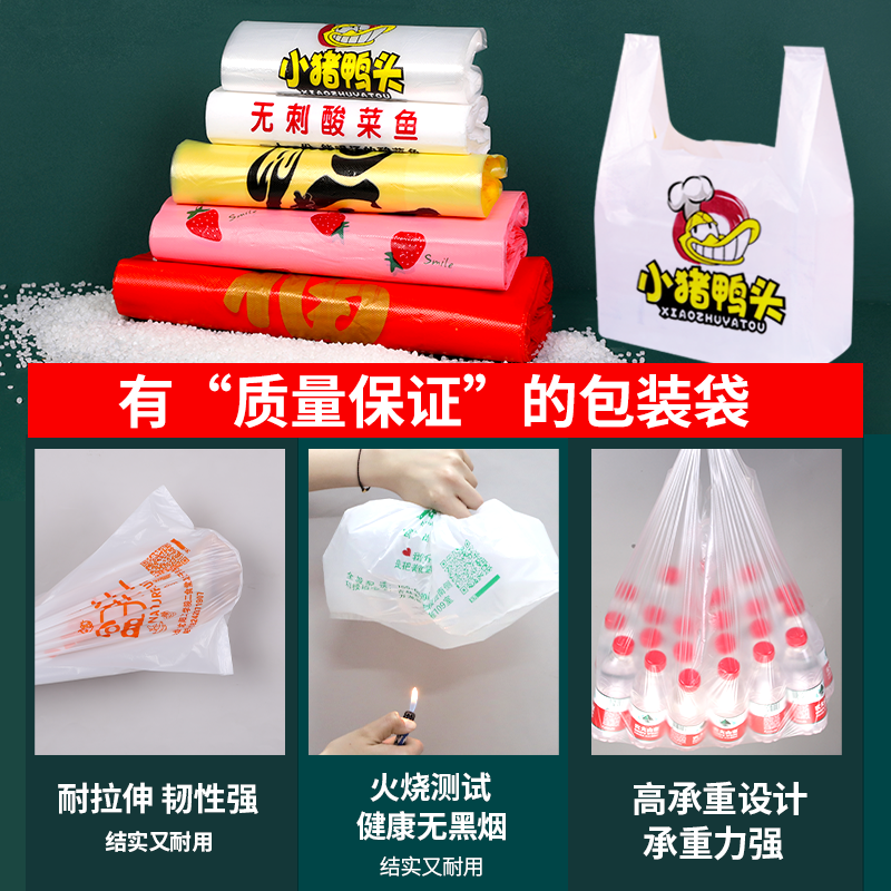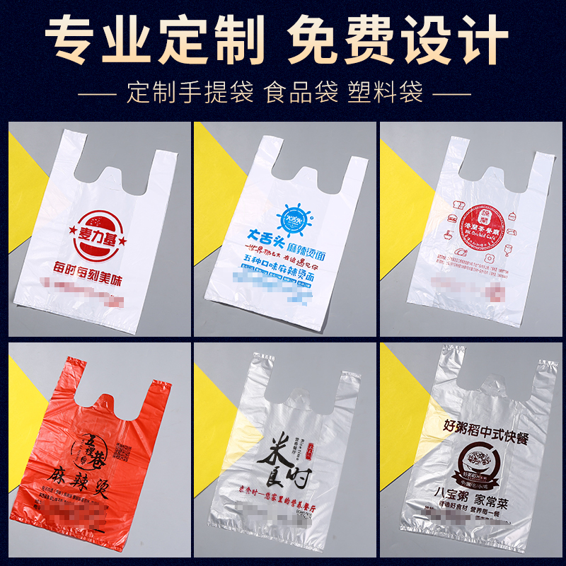 Food Packaging Bag Custom Print Logo Takeaway Packing Bag Disposable Convenience Bag Fruit Bag Plastic Bag Set Up
