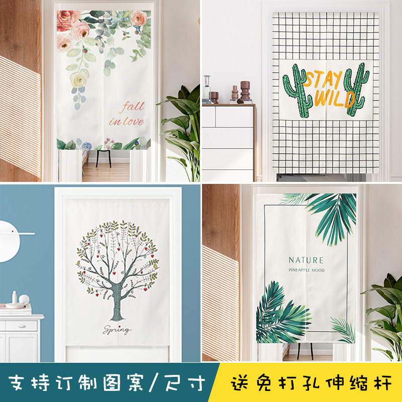Free punch upscale Nordic door curtain cloth simple partition window bedroom housekitchen aisle European style half curtain