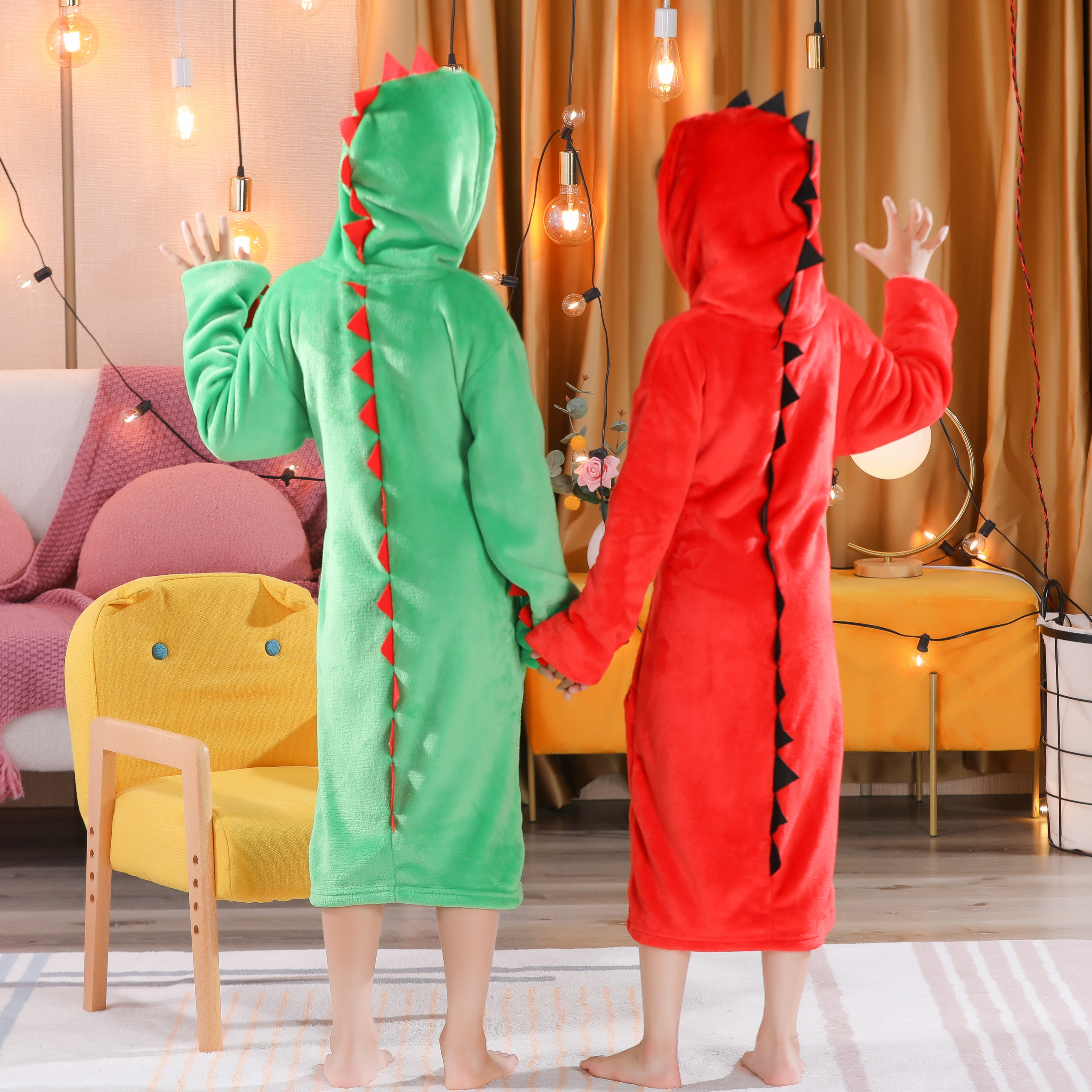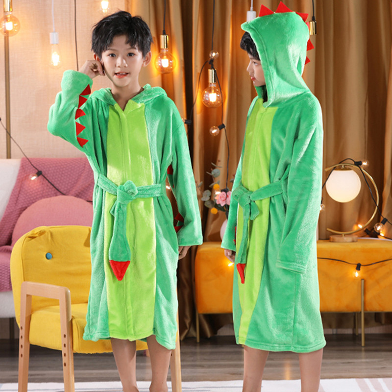 Fall and Winter Children's Dresses Coral Flag Bath in Large Children's Baby Cartoon Cartoon Pajamas