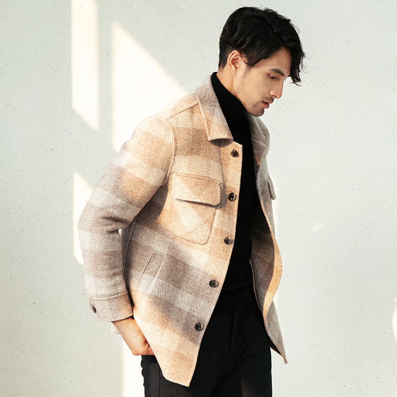 Autumn Winter new wool Son Jacket Man Short style Fashion Flipping Business Casual Cashless Double Face Coat Man