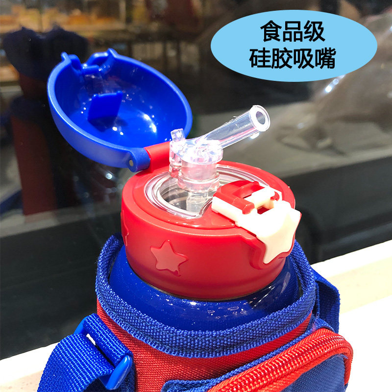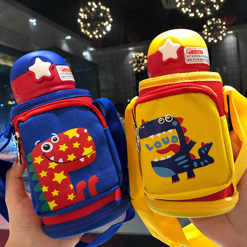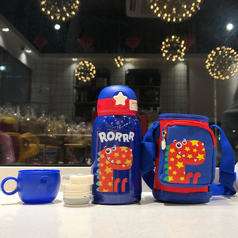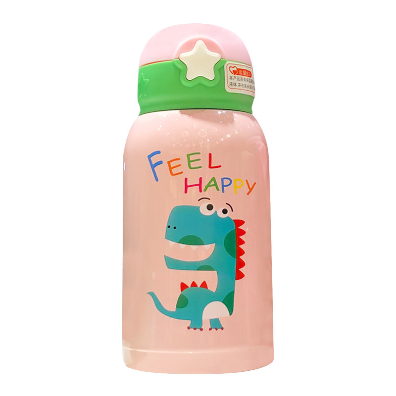 Cute creative children's thermos cup with straw dual-use water cup Student portable small dinosaur drop-proof baby kettle