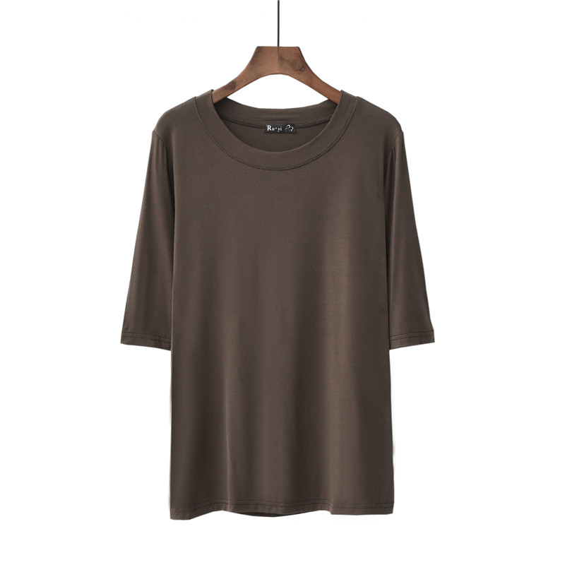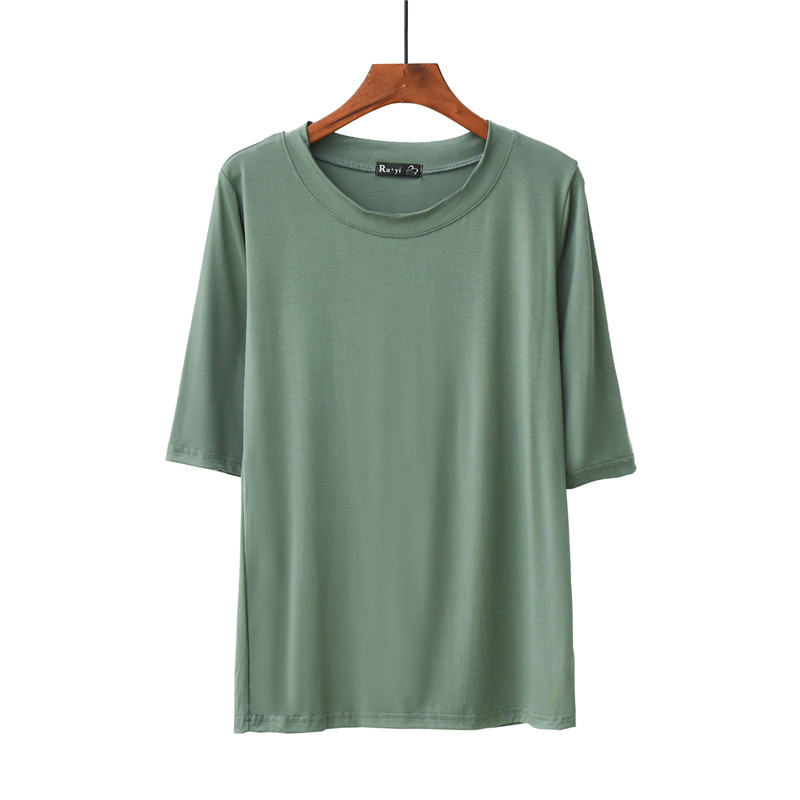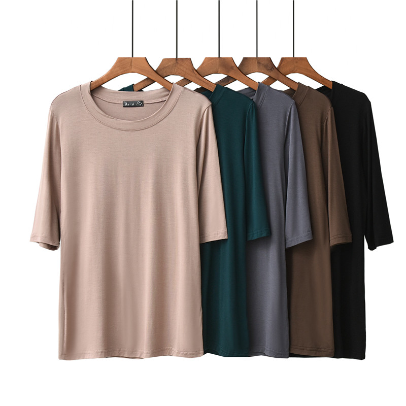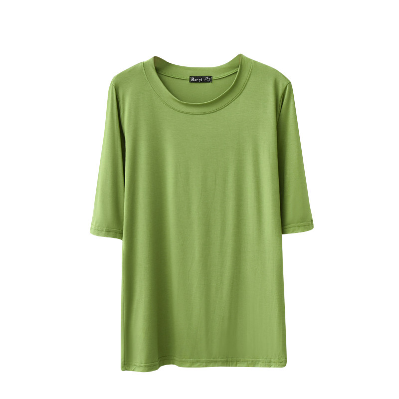 Thin modal cotton five-point sleeve T-shirt women's summer round neck three-point sleeve bottoming shirt loose thin top ice silk short sleeve