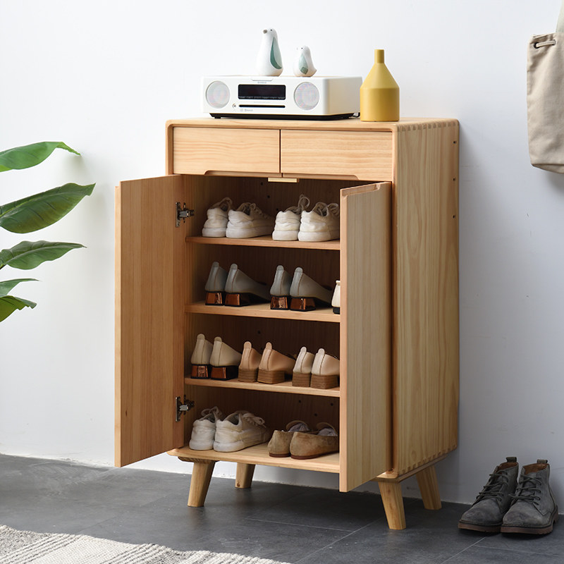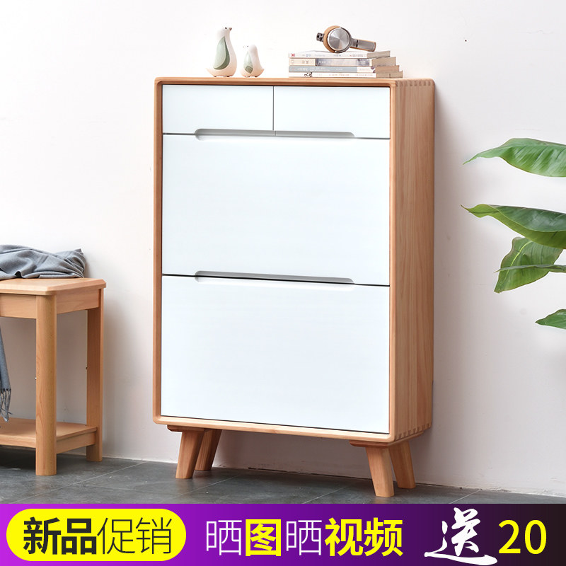 All solid wood shoe cabinets enter the door of the door, tipping bucket type, breathable, large-capacity household multi-layer storage, pure solid wood logs