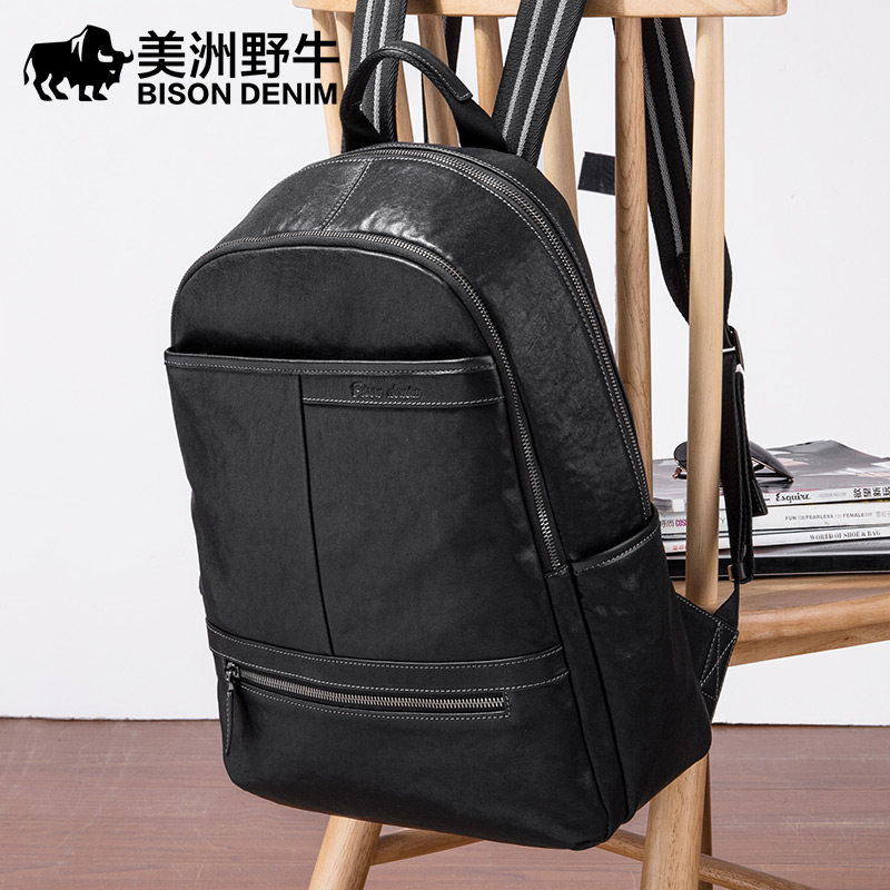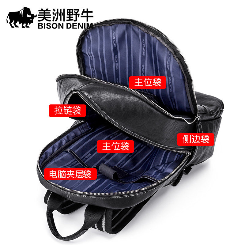 Americas Wild Bull Dermis Real Leather Men's Double Shoulder Bag Business Casual Computer SHOULDER BAG LARGE CAPACITY HEADLAYER BULL LEATHER BIG BAG
