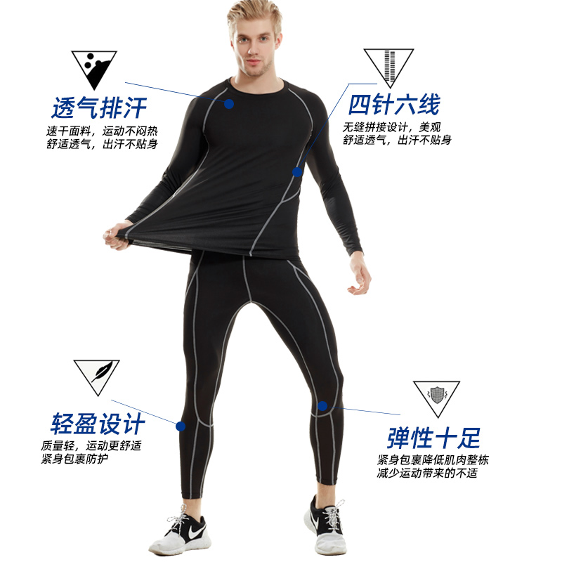 Fitness Suit Men Suit Morning Run Running Fitness Room Sports Tight Clothing Autumn Winter Basketball Training Speed Jersey Plus Suede