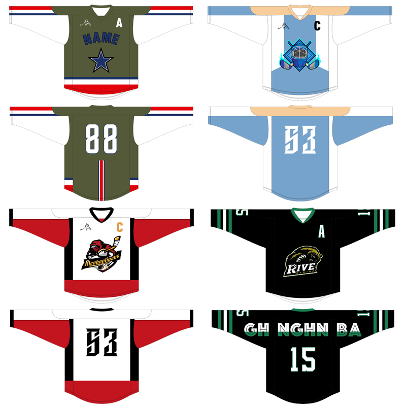 Style 1 Style 2 Style 3 Style 4 Style 5 Style 6 Style 7 Style 8 Style 9 Style 10 Style 11 Style 12 Style 13 Style 14 Style 15 Green Style 16 Style 17 Blue Style Our shop hockey uniforms have matching ice hockey socks (single socks cover price) Set up your own factory, undertake large orders Personalized customization 1 piece of minimum order, 1-4 pieces plus 20 yuan per piece, more than 4 pieces of free customization ice hockey clothing thickened fabric (contact customer service consultation)