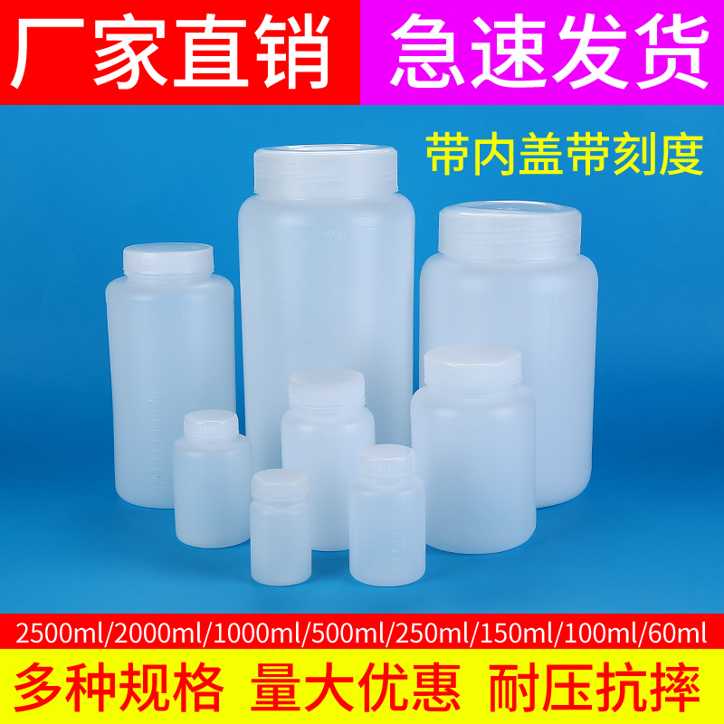 Reagent bottle plastic sample bottle portable sealed small medicine bottle water agent packaging bottle chemical solvent with scale with inner cover
