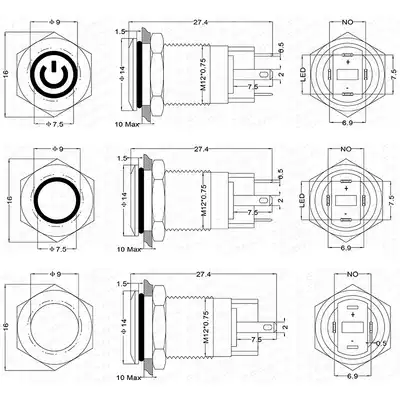 Self-locking ● Flat head without lamp 5-6V self-locking-red ● Flat head ring light 5-6V self-locking-yellow ● Flat head ring light 5-6V self-locking-blue ● Flat head ring light 5-6V