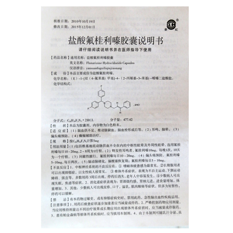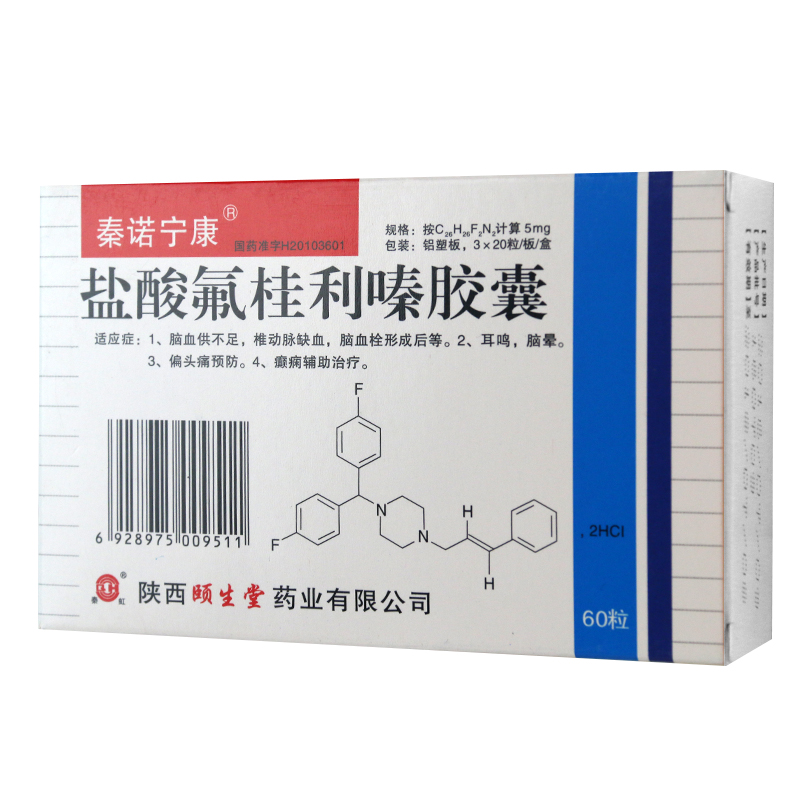 Qinnuo Ningkang Flunarizine Hydrochloride Capsules 5mg*60 Capsules Box Brain Insufficiency Cerebral Thrombosis Tinnitus Vertigo Prevention Migraine Auxiliary