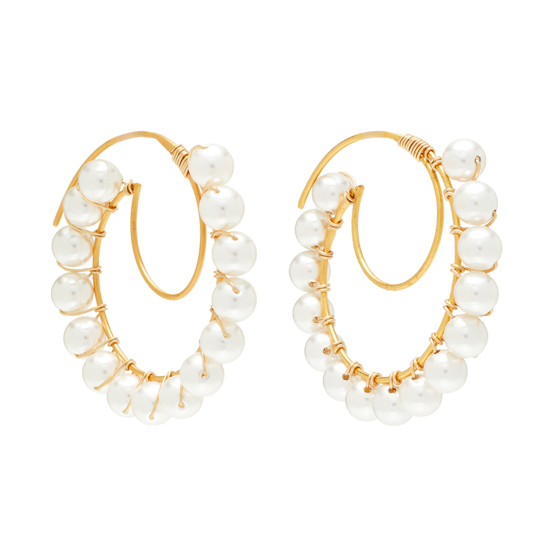 WANGS Fashion Pearl Large Earring of Small Elegant Renaissance Designer Pure Silver Plated Gold-Plated Moon Circle Earring