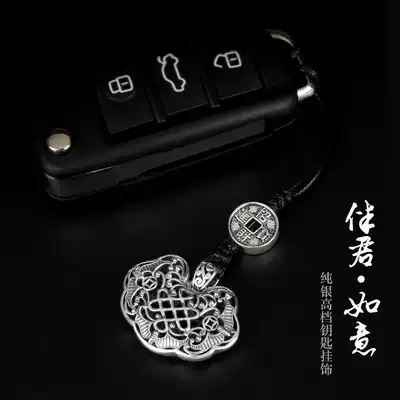 Pure silver five Emperor money, male and female couples car keychain creative high-end pendants hanging ornaments to attract wealth peace