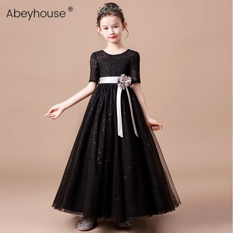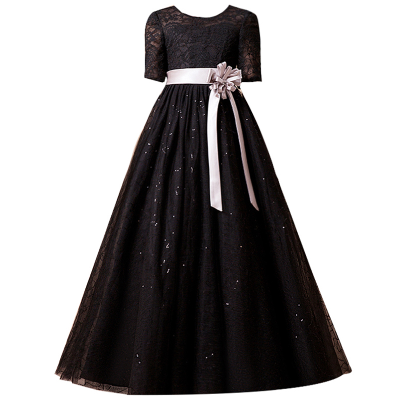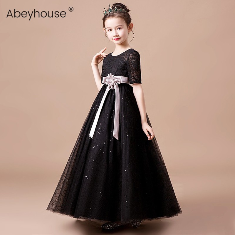 Girls black dress middle-aged children's high-end piano performance costumes children's violin playing orchestra conductor princess dress