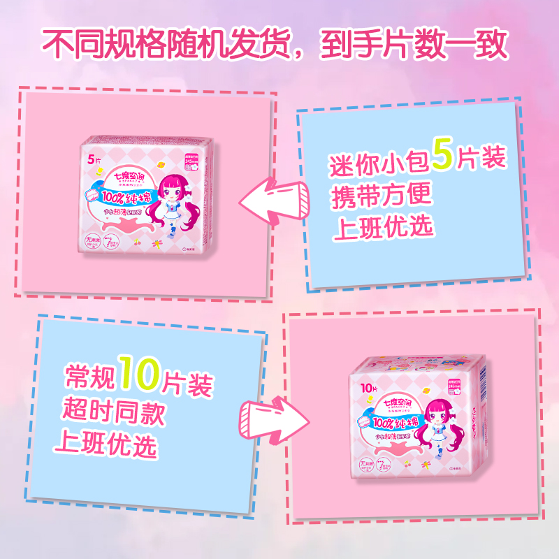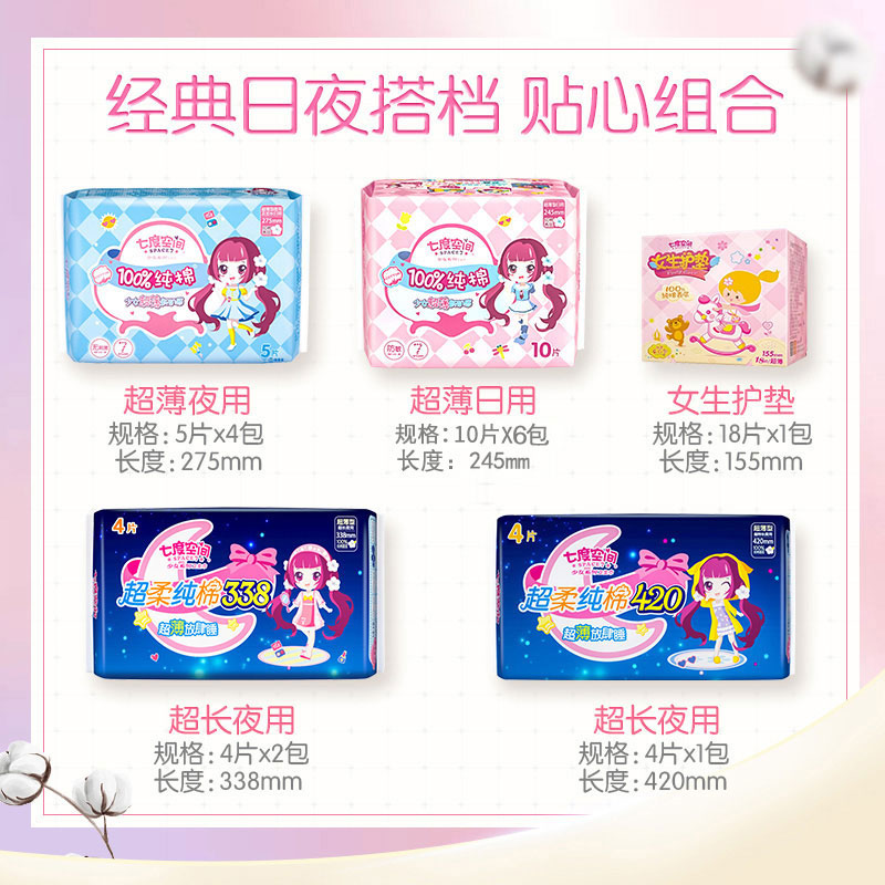 Seven-degree space adolescent girls series sanitary cotton day and night combined aunt towel night with extra-long 420 whole box 110 pieces
