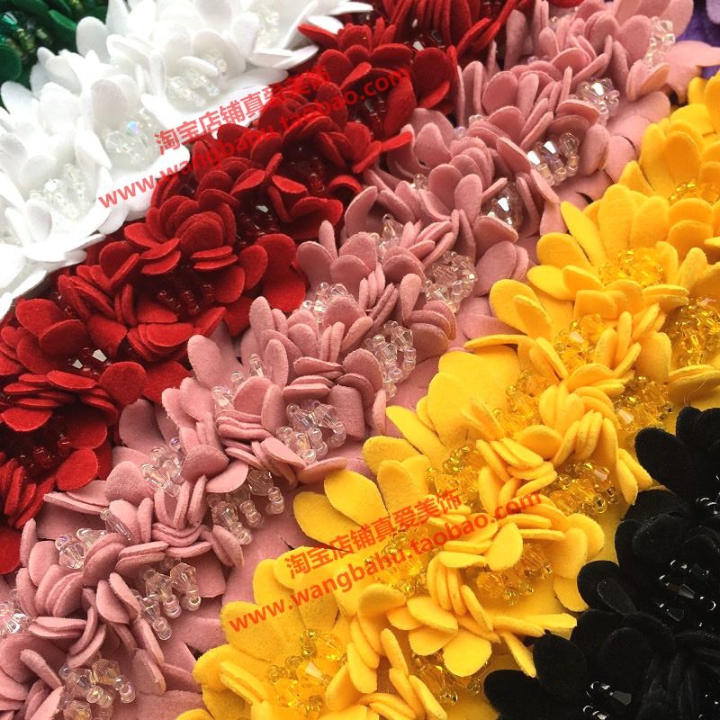 Pink rice white yellow green black purple red crystal beaded flannel flower DIY headscarf hair band decoration bead flower clothes flower