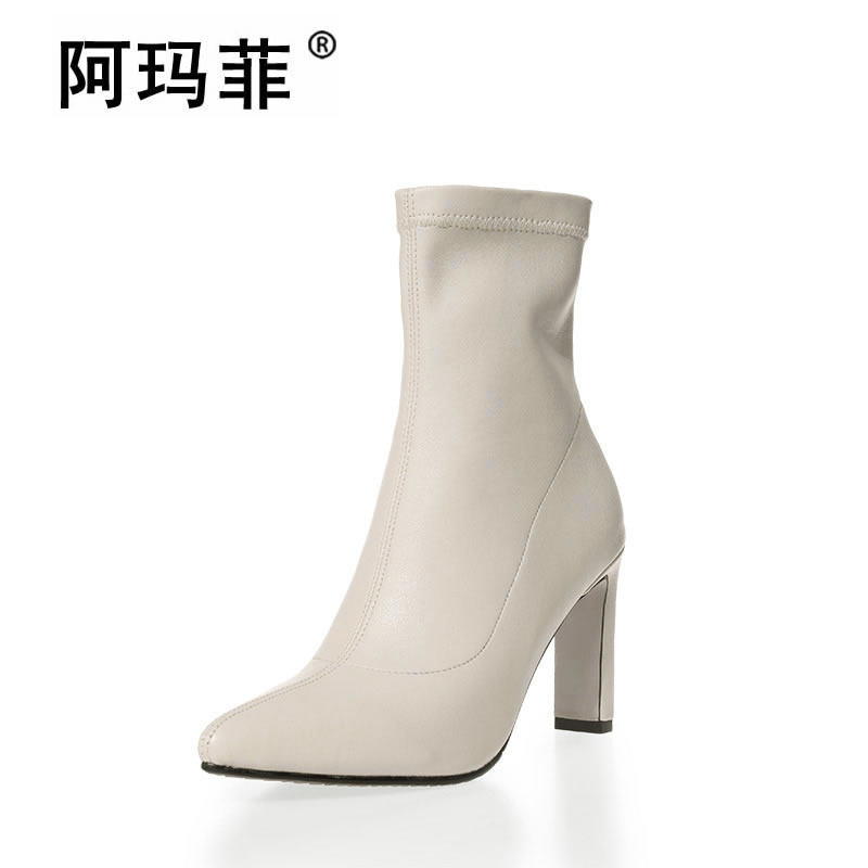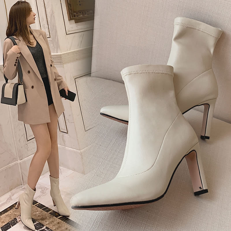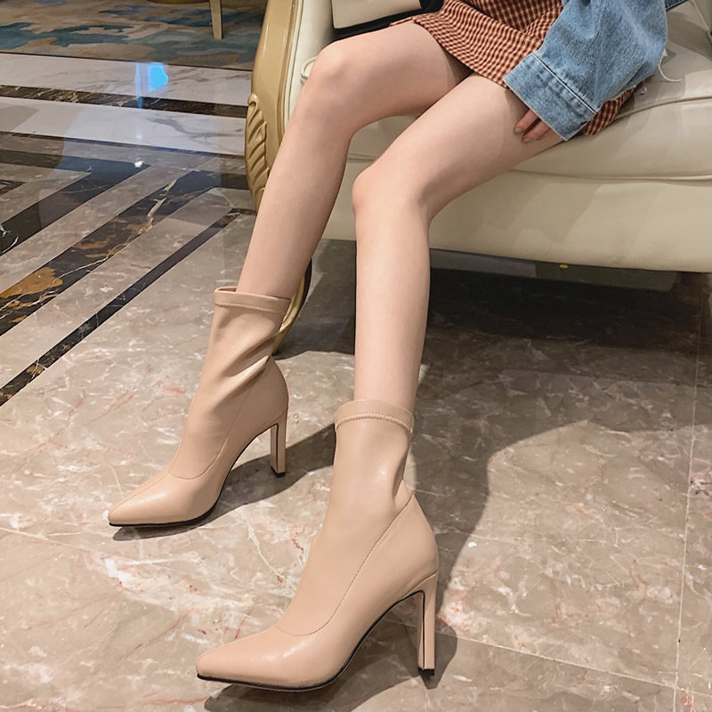 2022 Autumn Winter New Women's Shoes Coarse Heel High Heel Shoes Pointy Socks Boots Elastic Boots Slim Boots Slim Boots Slim Boots Woman Boots