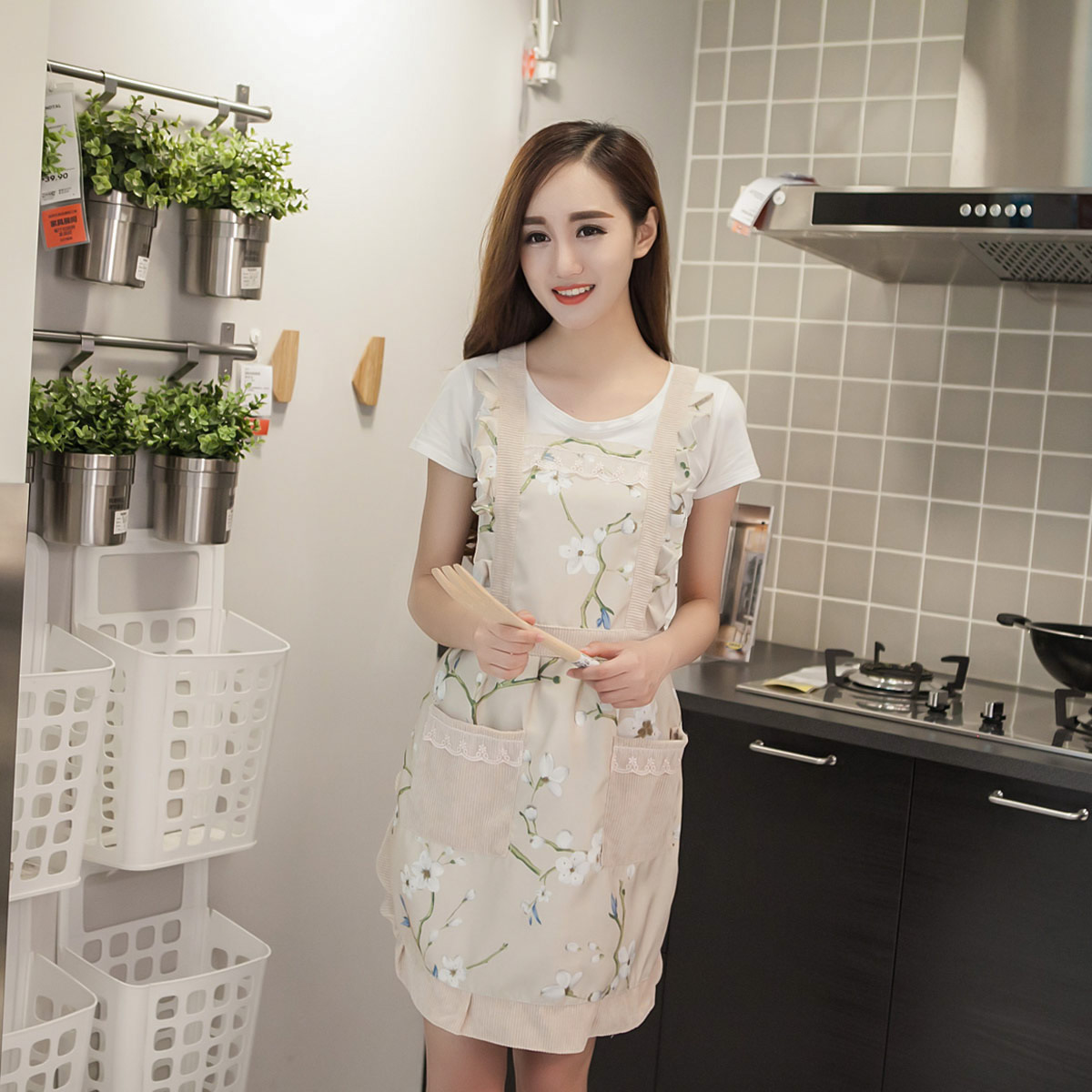 Cyan Green Yellow Orange Light Blue Light Green Grey Labour The Most Glorious Striped Pink Flak Flawless Flowers Blossom Sunflowers Pink-Beep Lip Fresh Hand Painted Bird Watercolor Flowers Birds Eight-character Hut Printed Apron Tea Color Cycling Girl
