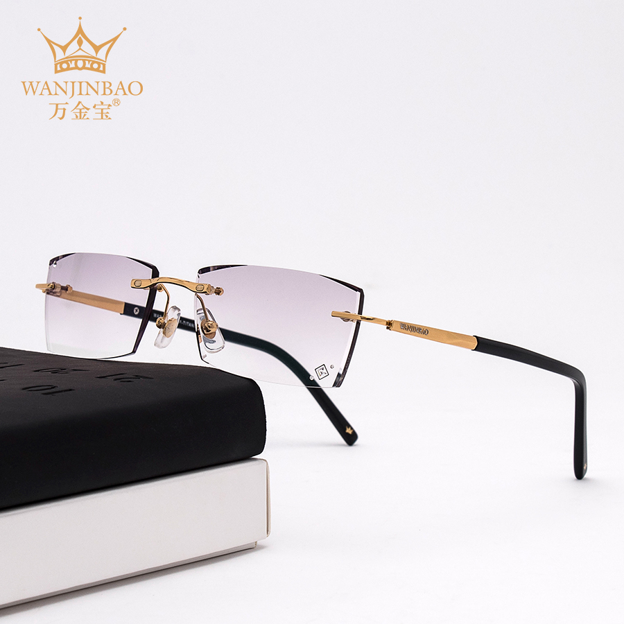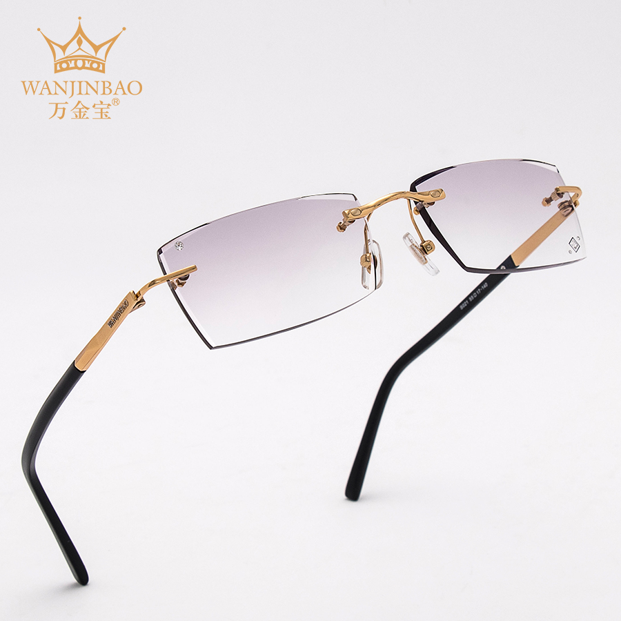 ten thousand gold treasure Korean version no frame inlaid diamond cut edge glasses men's pure titanium business frame match myopia with degree finished product tide