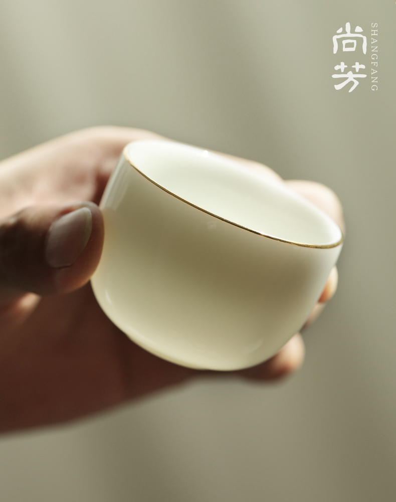 Shangfang painted gold ceramic master cup single cup kung fu tea tea set handmade white porcelain small tea cup tea cup tea cup