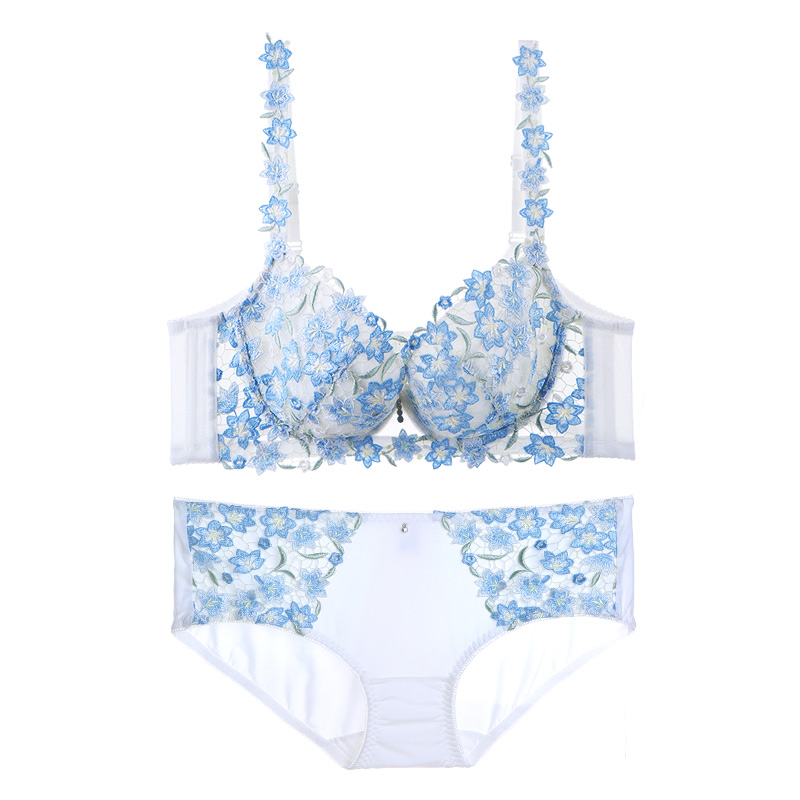 Moisturizing Bra Women's Delicate Embroidered Flowers Adjustment Thin-style Breathable Anti-Drooping Poly-Sexy Lingerie Suit