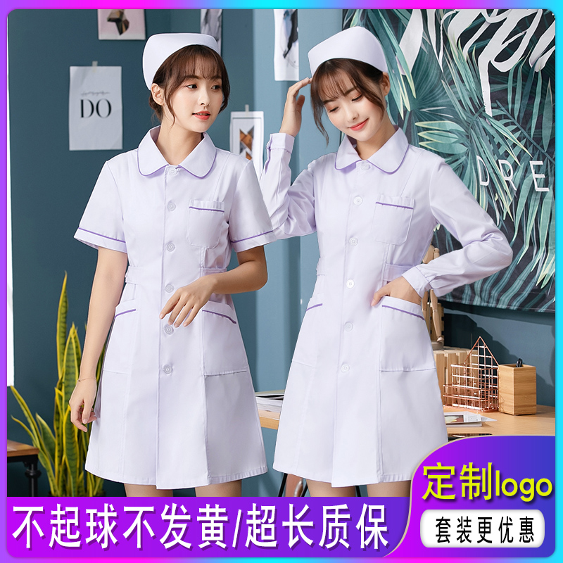 Internship Nurse Service Long Sleeve Woman Winter Suit White Coat White Coat Short Sleeve Summer Thin Section Round Collar Guard School Student Drugstore Work Clothes