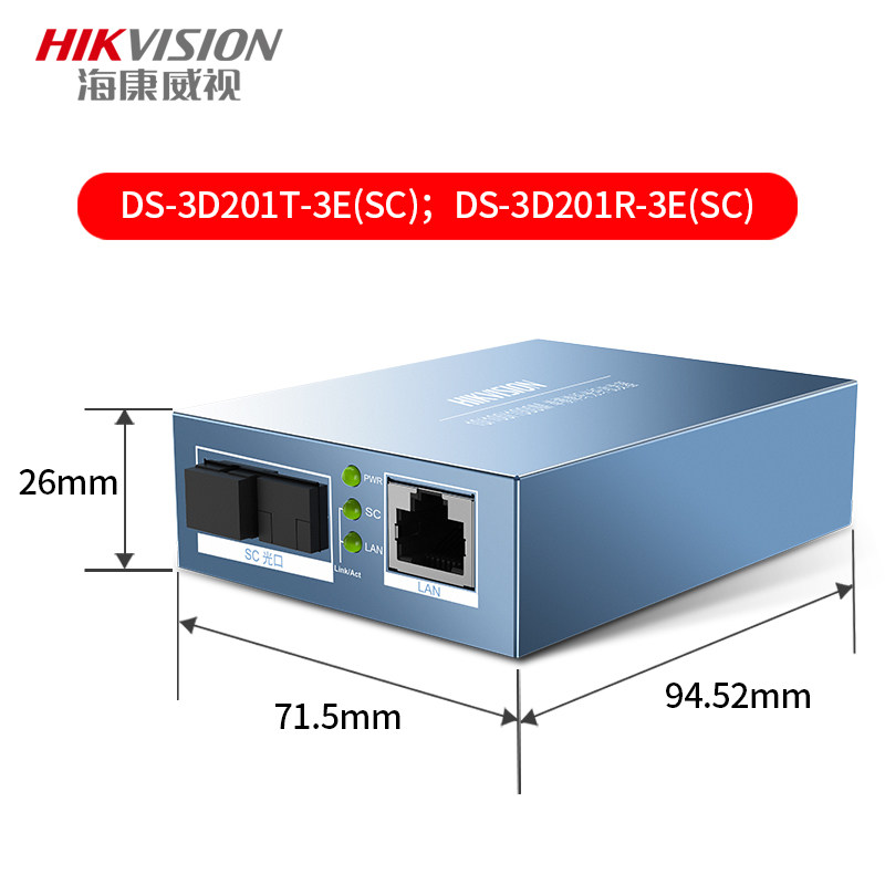 Hikvision 100M Gigabit Fiber Transceiver 3km 20 male Receiver DS-3D201R-3E (SC)
