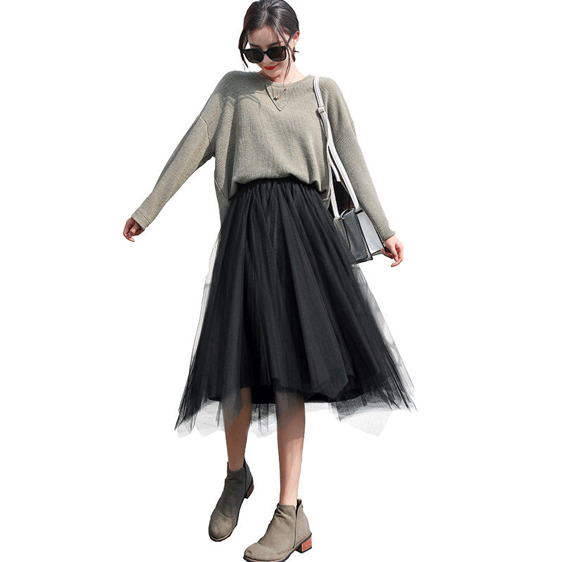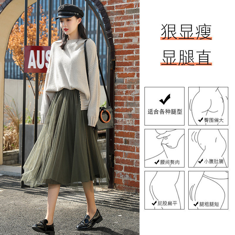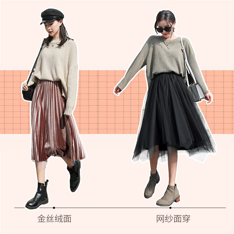 200 pound gauze skirt autumn and winter pleated large size with sweater mesh skirt skirt female gold velvet two sides wear skirt