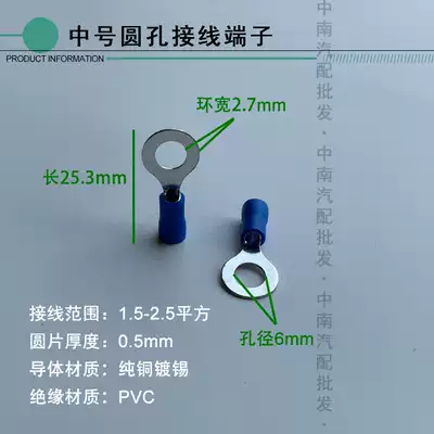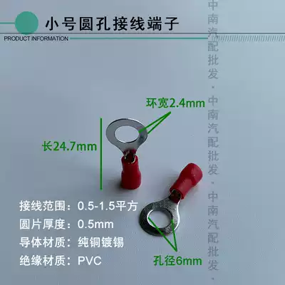 Round-hole terminal O-type cold-pressed terminal tinned pure copper car line modification ground iron copper terminal terminal tail