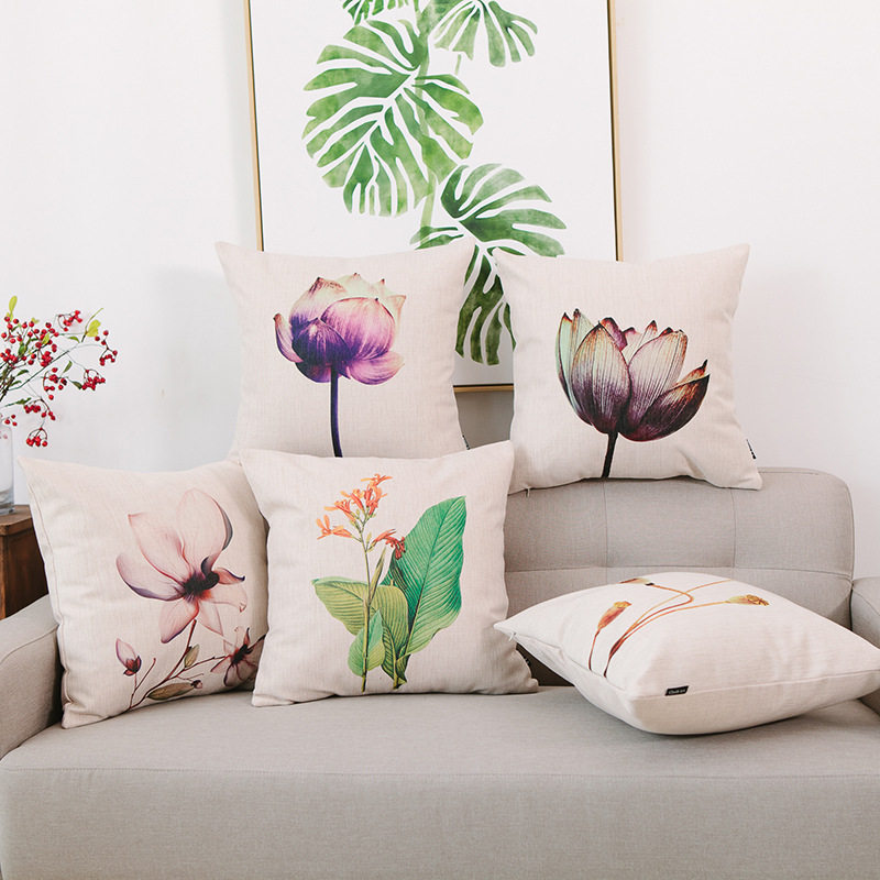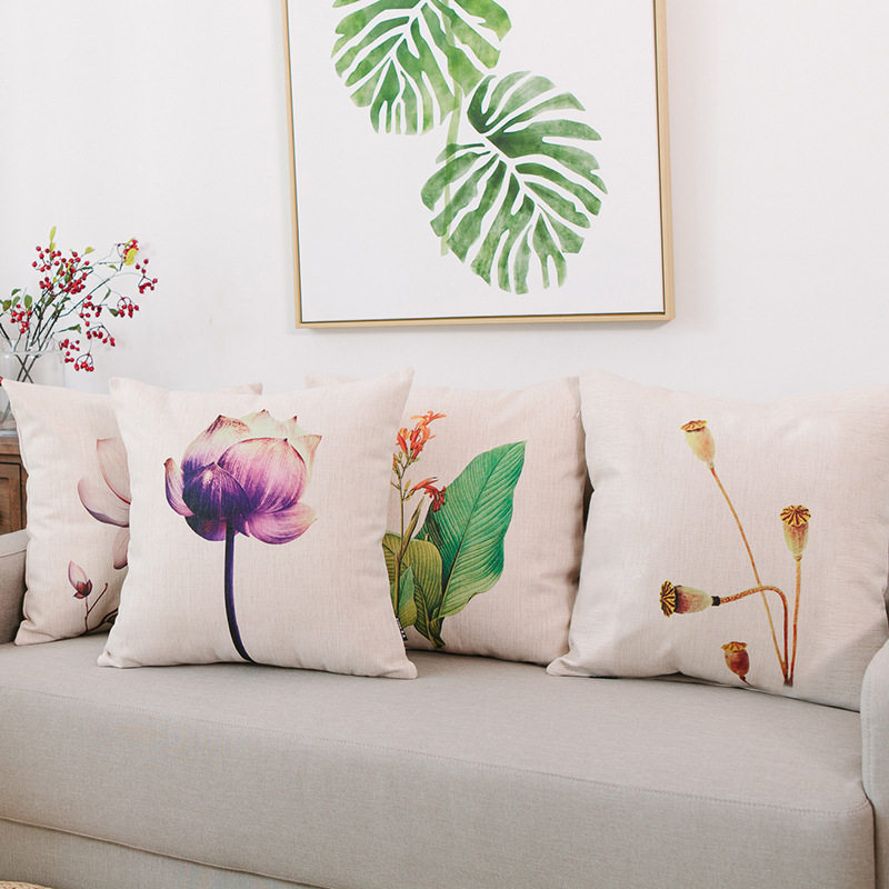 Idyllic lotus pattern cotton and linen pillowcase car pillow bedside cushion waist cushion multi-functional Chinese pillow