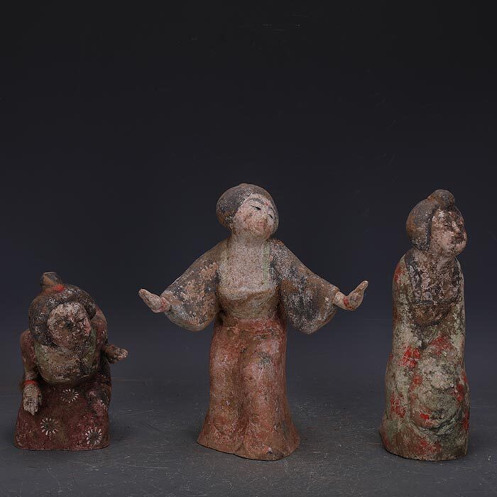 Seven sets of the Tang Dynasty handmade colorful pottery sculpture dance female figurines to make old imitation unearthed old goods ancient porcelain ware ancient and antique collection