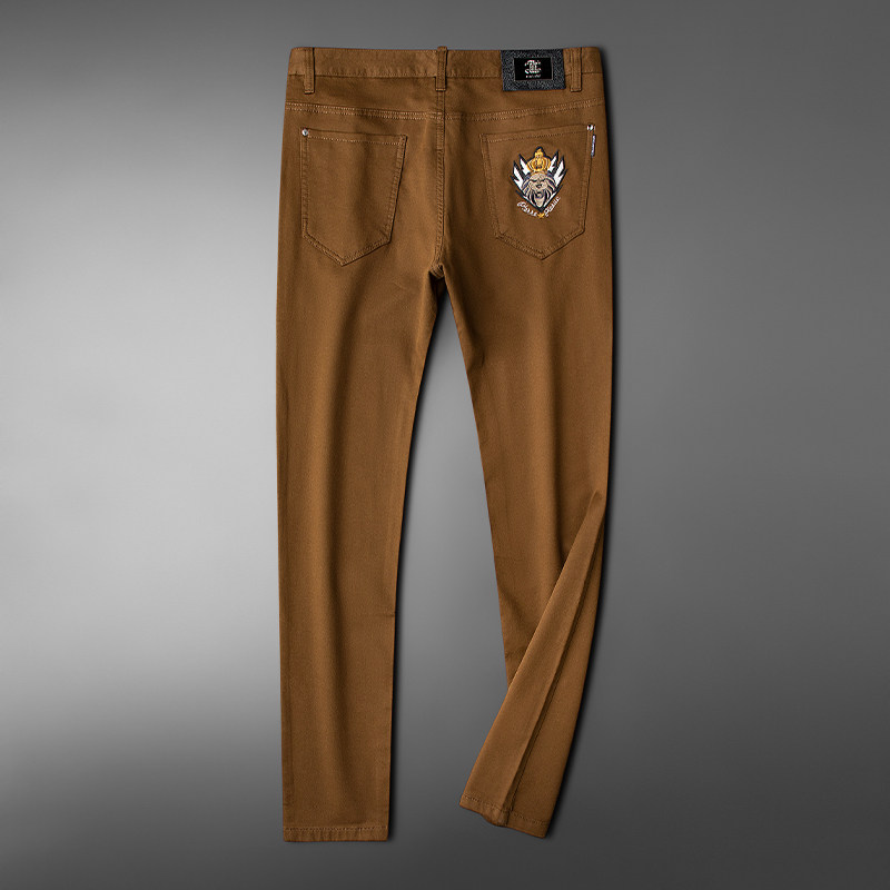 Break Code Clear Cabin Casual Long Pants Men's Body Elastic Men Personality Embroidery Mid-Waist Business Pants Man Little Foot Tide