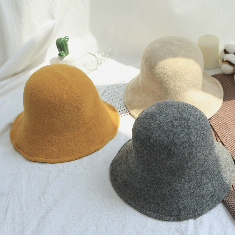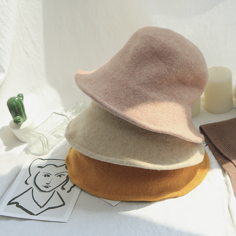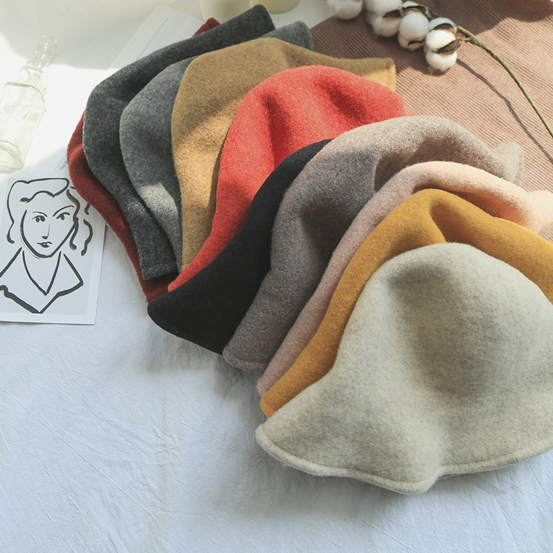 Autumn and winter woolen knitted fisherman hat thickened warm ladies small edge foldable Japanese women's pot hat