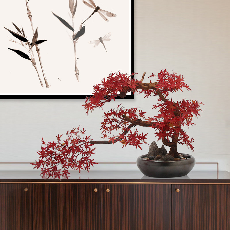 New Chinese emulated floral art bonsai red maple tree swing piece club-like room TV cabinet Guan Guan Tea Room Adornment