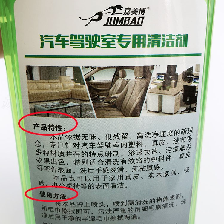 Jiamebo Multifunction Odourless Interior Cleanser Car Cab Exclusive Clean Meryl Plastic Piece Leather